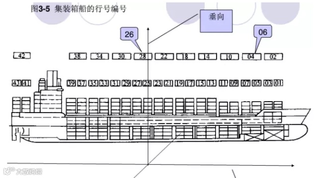 集装箱在船舶纵向(艏-艉方向)的排列顺序号。作为集装箱箱位的纵向坐标。自船首向船尾,装20ft箱的箱位上依次以01、03、05、07…奇数表示。