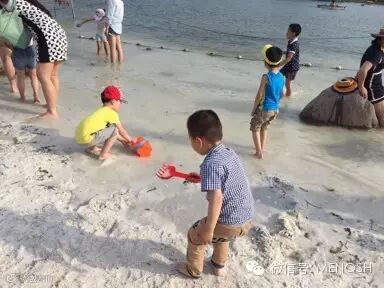 活动结束后,意犹未尽的孩子们来到公园中著名的白沙滩,玩沙、戏水,好不快活。