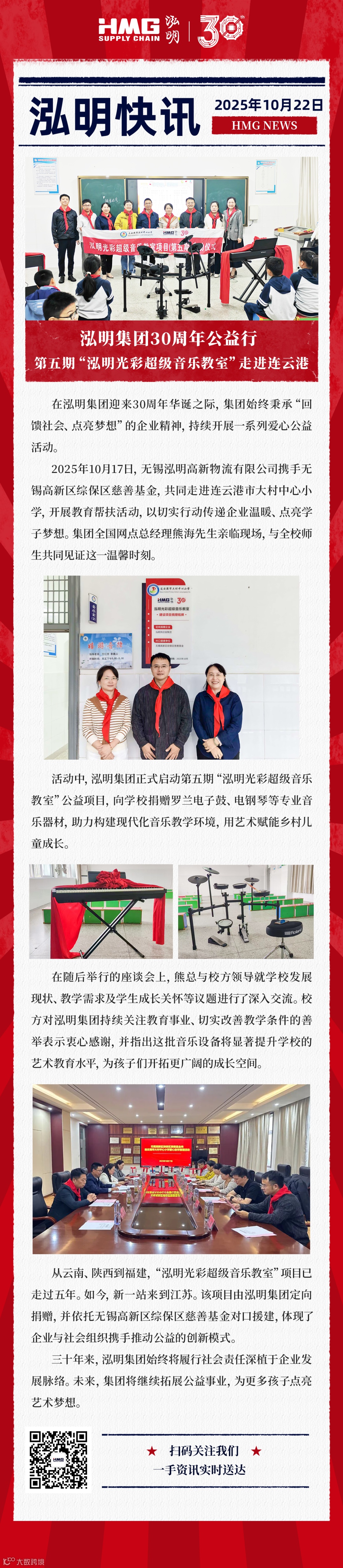 泓明集团30周年公益行 | 第五期“泓明光彩超级音乐教室”走进连云港