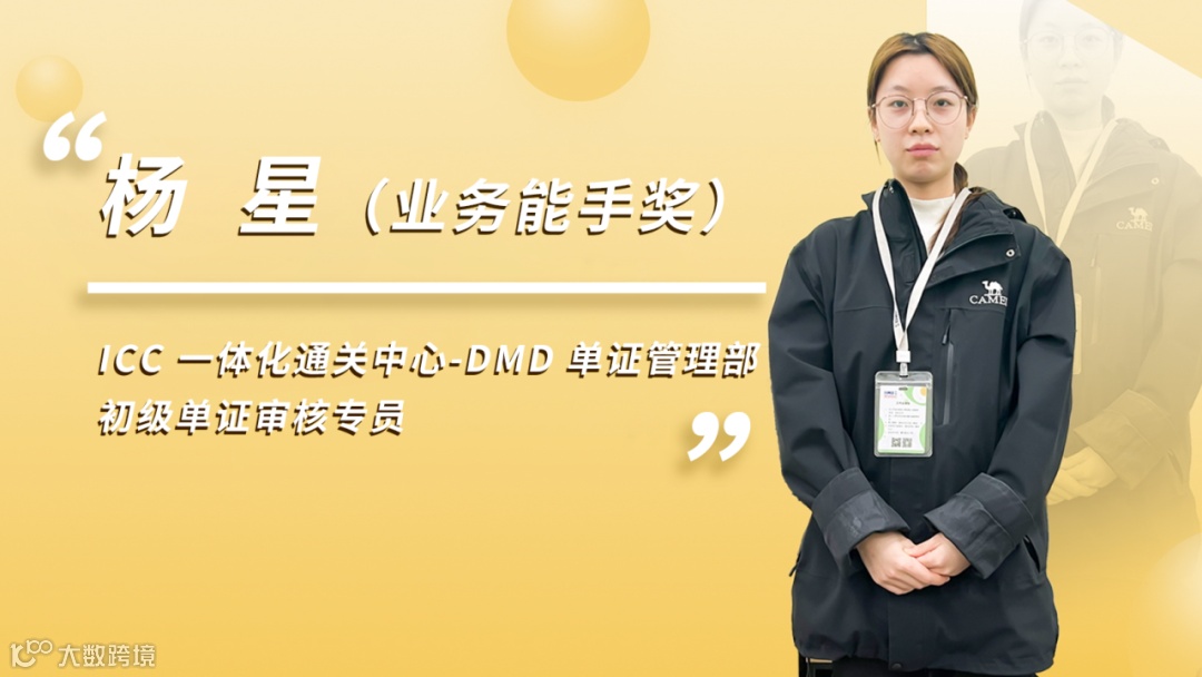 她精通关务知识,上半年高效管理10个库区保税流转,下半年主导多项复杂业务单证制作,第三季度个人制单单量超小组平均11.3%,且全部按时完成,无误删改。面对系统异常,杨星主动沟通,迅速解决问题,确保单证时效。在新S模块保税流转业务实操中,她主动测试,发现问题并提出解决方案,有效优化流程,提高工作效率。同时,积极带教同事,提升团队整体能力。