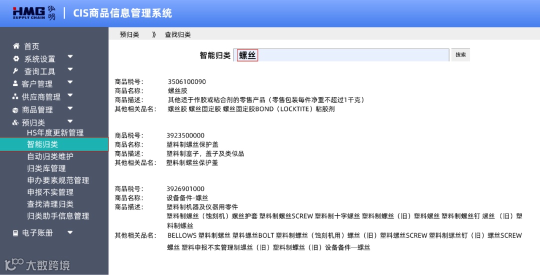 目前已为全球数百家企业提供HS编码预归类服务,企业信息库内有上百万条归类记录,搭配一体化归类协同平台(CIS),可以迅速帮助客户实现推荐归类和智能归类;满足同客户同商品一次预归类,应用于所有海港机场和自由港等多口岸,大幅提高申报效率和准确率,让通关更迅速。