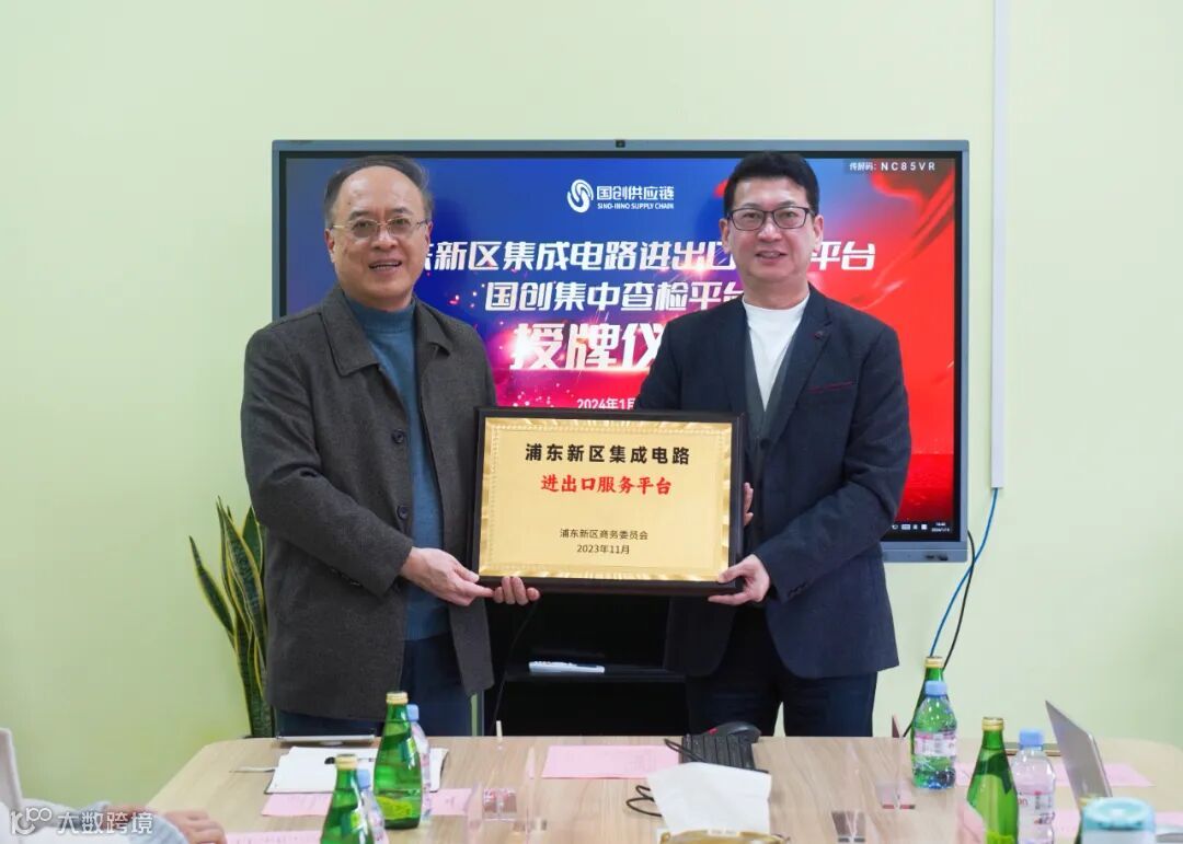 2024年1月16日,浦东新区集成电路进出口服务平台授牌仪式在国创集中查检中心隆重举行。浦东新区商务委为国创集中查检平台授牌首家“浦东新区集成电路进出口服务平台”。浦东新区商务委副主任陆启星、浦东海关副关长瞿奕、浦东新区科经委电子信息处顾俊、张江管理局副局长吴俊、上海市集成电路行业协会秘书长郭奕武、上海国创供应链有限公司董事长曹明、总经理助理蒋寅等出席仪式。(信息来源:浦东发布|直击引领区丨进一步提升集成电路产业链供应链效率,浦东首个集成电路进出口服务平台授牌)
