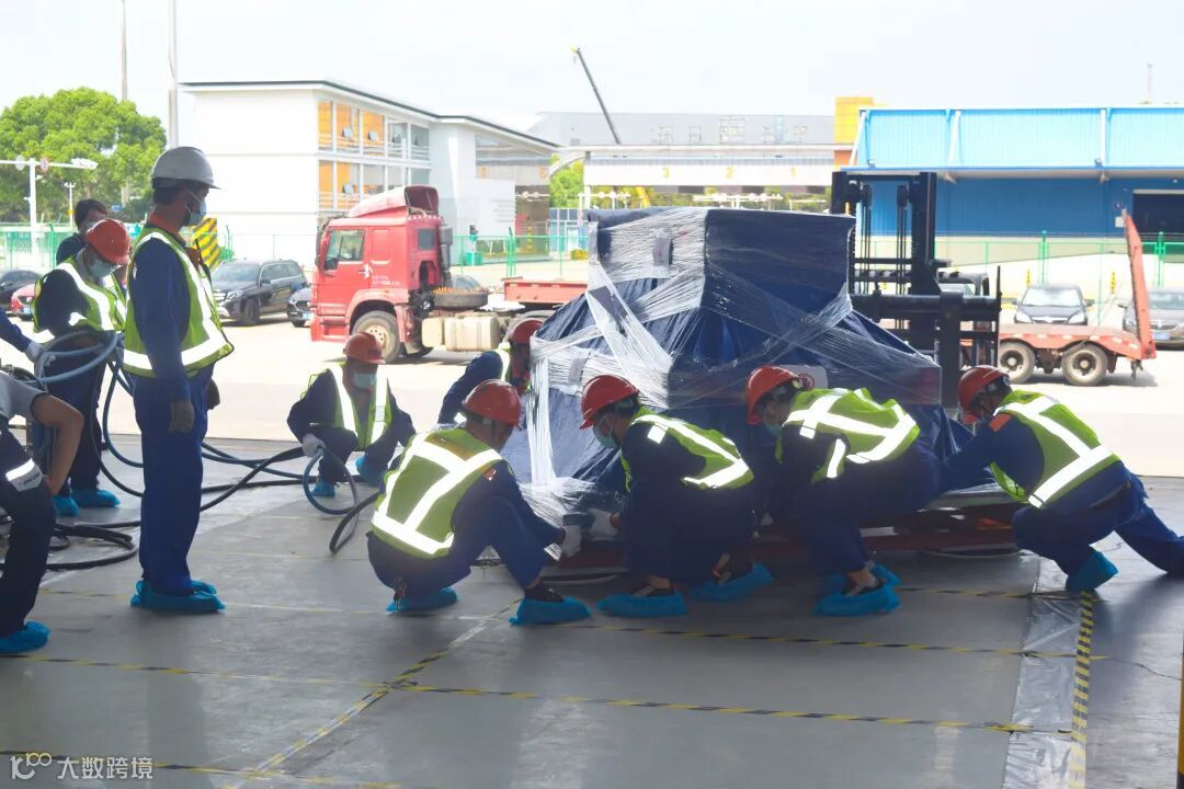 今回のイベントは泓明エリア社長熊海が司会を行い、沈翊さん、宮内優さんが会場で素晴らしい挨拶をした。その後,華北日通は当社倉庫スタッフと現場で20分間の装置搬入の演習を実施した。重機を借りずにエアクッション・パレットを使って、約8トンの単体貨物を倉庫の指定場所に移動させることを実演した。ゲスト全員が現場で見学し、演習について意見を交換した。