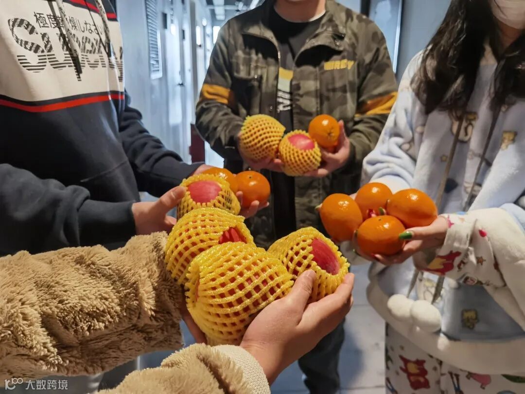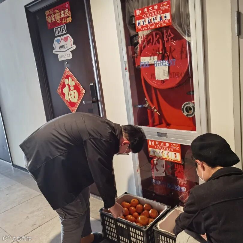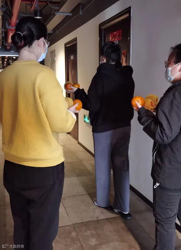 今天上午,泓明集团后勤保障人员为封闭在宿舍的员工送去苹果、砂糖桔、牛奶、面包、方便面、洗漱用品等各类众多生活必备物资,同时向他们致以敬意和感谢。