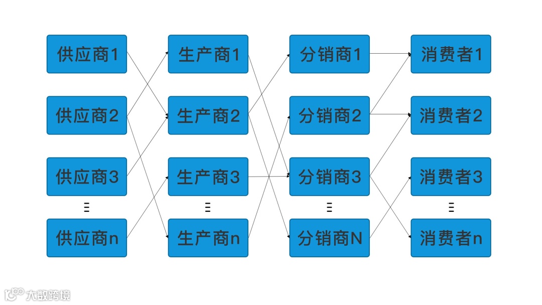 我们在供应链的概念可以看出,供应链联系着产品供应、制造、分销、零售以及客户等多个复杂的主体(包括个人和企业),不同产品的供应链定然有很大不同,而且复杂产品的供应链可能跨越了数百个阶段,一个周期将持续几个月甚至更多