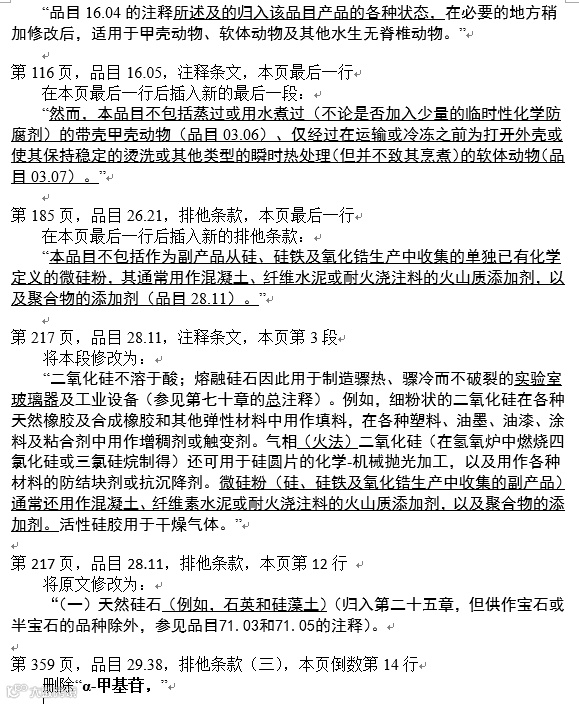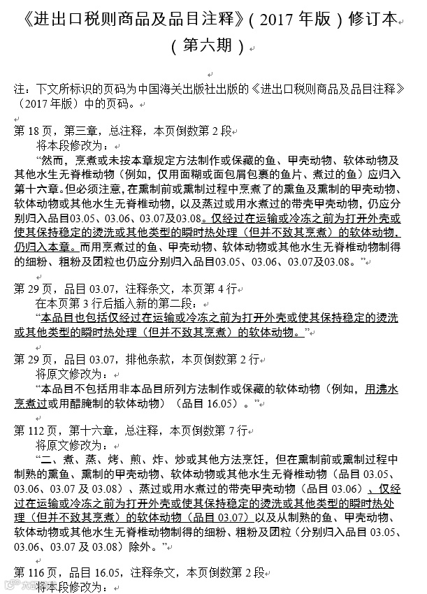 《进出口税则商品及品目注释》修订本(第六、七期)部分截图: