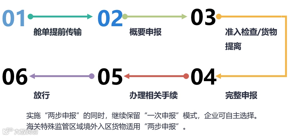 特殊监管区域一线进境货物适用“两步申报”,自贸区内特殊监管区域外适用普通货物“两步申报”流程。