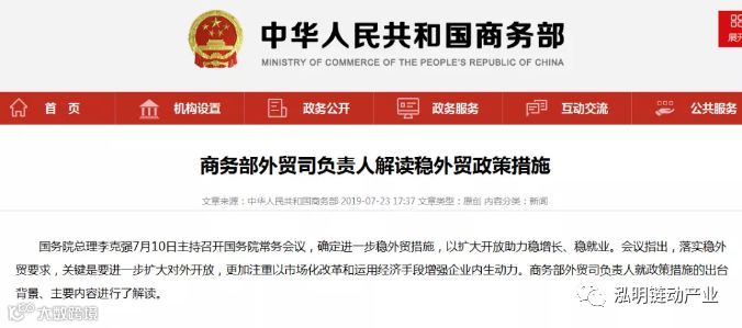 据商务部网站7月23日消息,国务院总理李克强7月10日主持召开国务院常务会议,确定进一步稳外贸措施,以扩大开放助力稳增长、稳就业。会议指出,落实稳外贸要求,关键是要进一步扩大对外开放,更加注重以市场化改革和运用经济手段增强企业内生动力。商务部外贸司负责人就政策措施的出台背景、主要内容进行了解读。