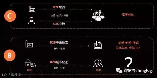 但是B端的物流还非常弱,干线稍微好一点,因为干线会有整车和零担,同时还有更多的合同物流企业,但是最弱的在哪?在B2B的城配,最后一公里,你讲到城配你几乎想不起来中国有什么大企业,尤其是全国化的。所以我觉得最大的痛点就在这个问题,如果你要解决新零售的问题,解决供应链的问题,如果最后一公里在拖后腿几乎是不可能的事情。