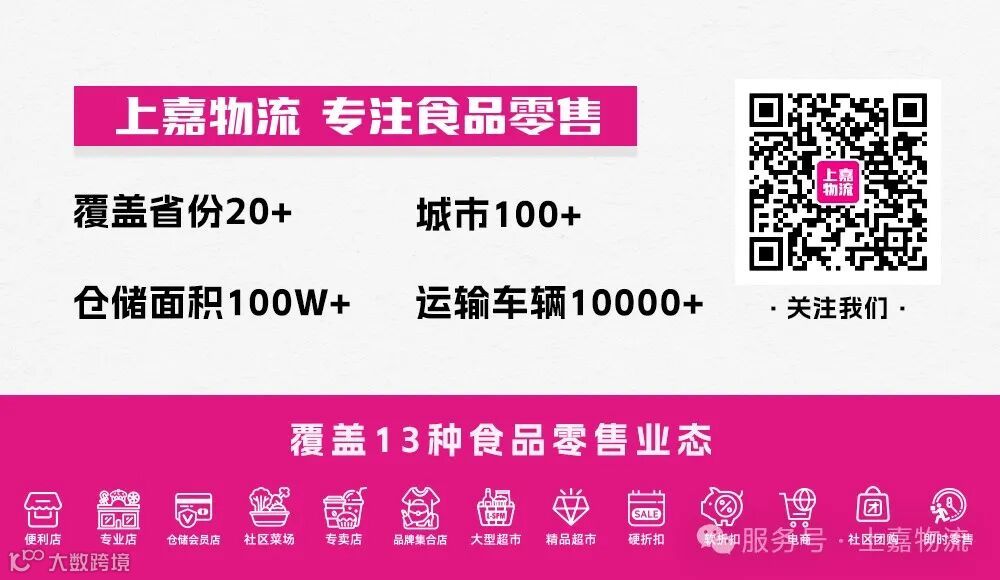 目前,上嘉物流凭借卓越的行业洞察力与前瞻性战略眼光,已精准掌握当下 13 种食品零售业态,当之无愧地成为食品零售物流领域的领军者。
