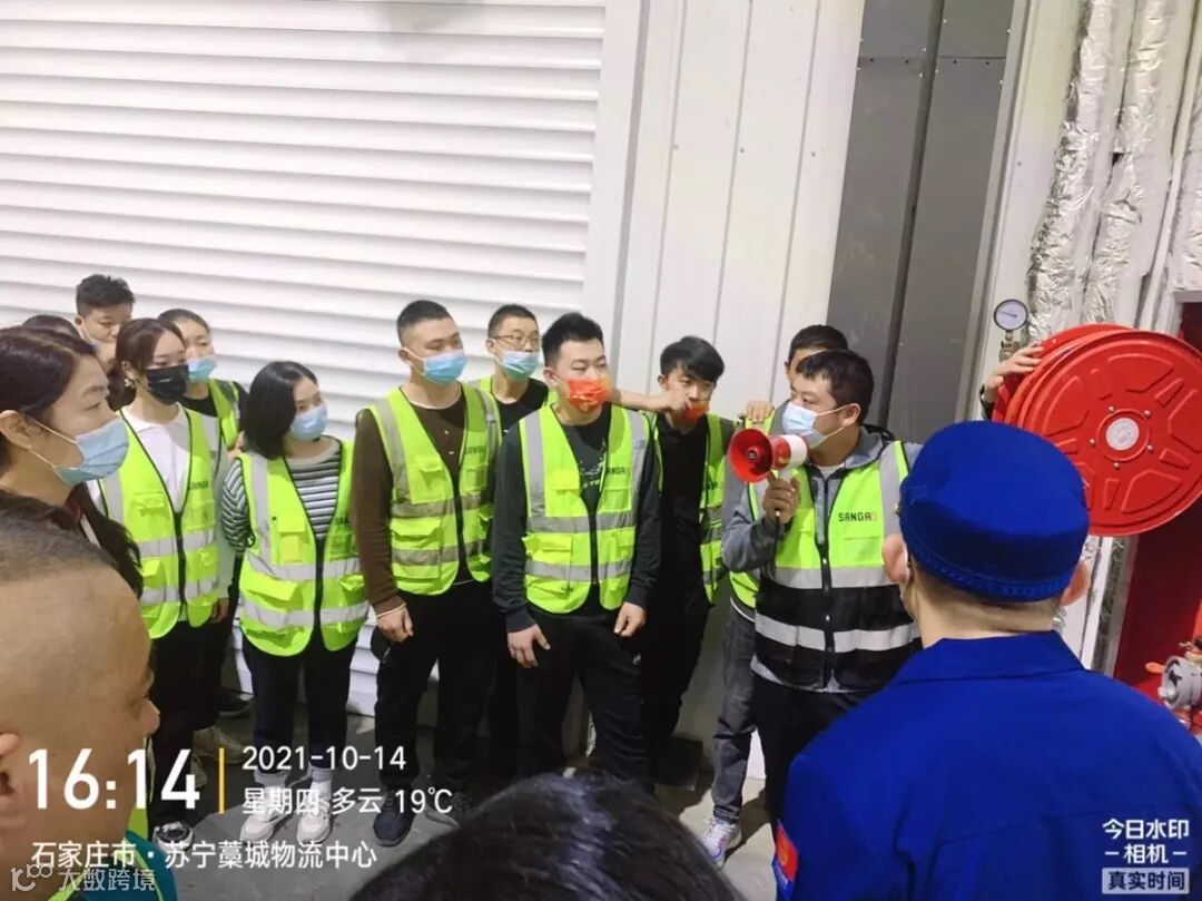 实训演练正式开始前,各仓消防指挥官宣讲消防知识、演习的流程、逃生方法、灭火方法,进行人员分组和工作安排。