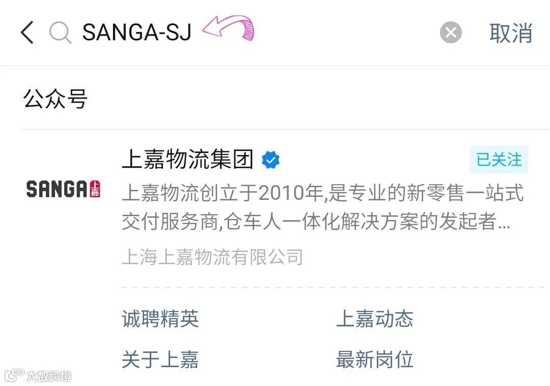 1.微信点击“添加朋友”,在“公众号”序列里搜索“上嘉物流集团”或输入SANGA-SJ字样。