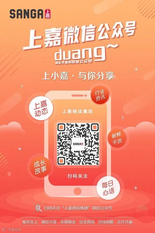 2.扫描识别二维码,手机将自动转到“上嘉物流集团”公众号,点击关注即可。