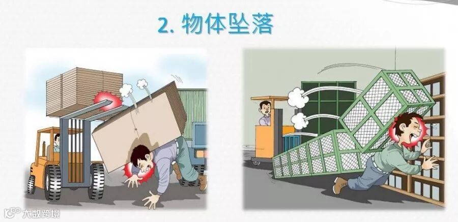 在使用操作机器或叉车前未检查机器状态,没有防护的传动齿轮、裸露的带电体或照明不良等都会导致危险。