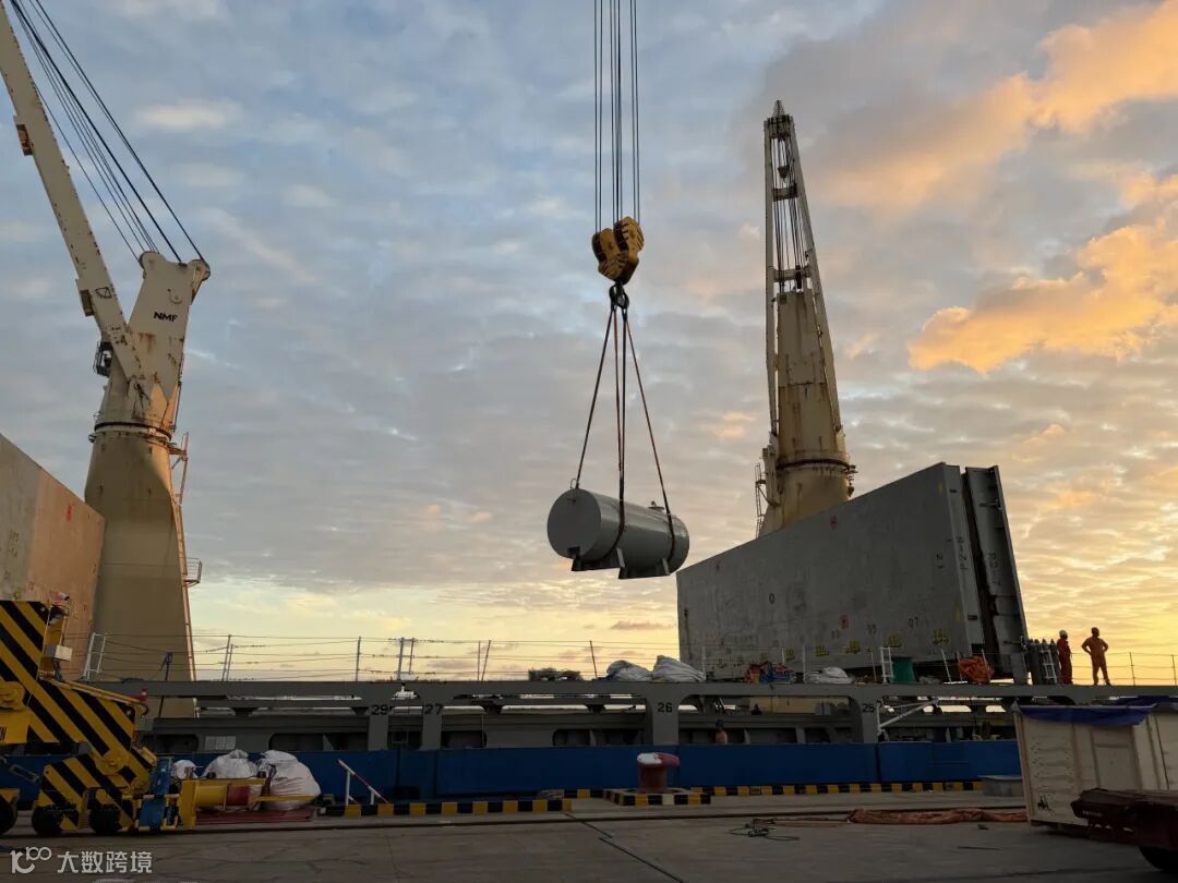 江苏吕四港码头。随着最后一套主变压器稳稳登上特运“大安”轮,南非德阿光伏项目首批关键设备正式启航。该批设备的成功发运,标志着总装机容量达342兆瓦的德阿光伏项目全面启动,项目正式进入设备国际物流阶段。