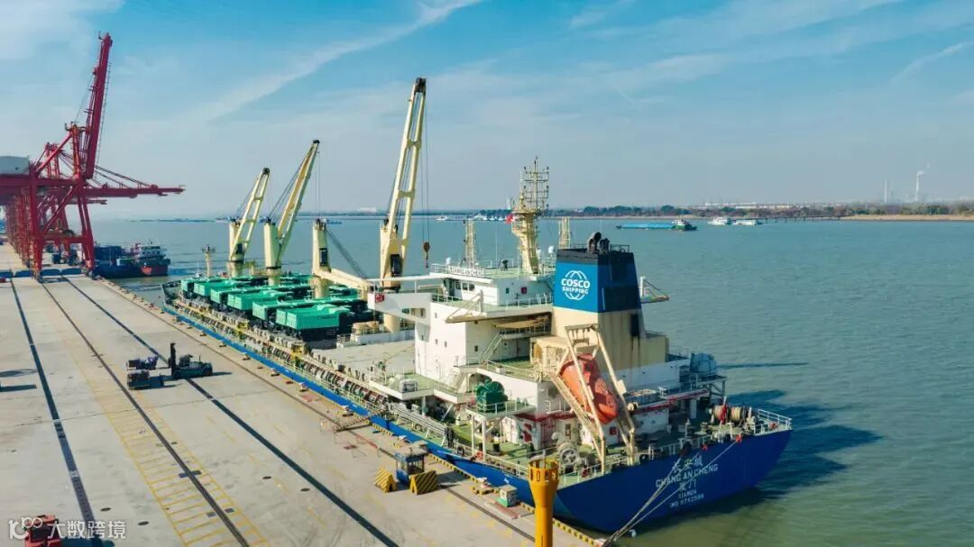 1月8日,中远海运特运38000吨级多用途船“长安城”轮装载48897计费吨大型工程车辆、矿建设备、矿山生产物资等从江苏张家港港鸣笛启航,远赴南美西,首港将挂靠秘鲁钱凯港,将30台混合动力矿车交付客户手中。