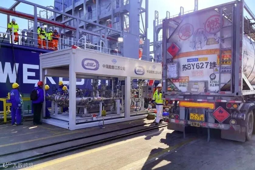 11月30日,中国船燃江苏公司在泰州为即将试航的1300TEU新型甲醇双燃料动力集装箱船,成功加注79.5吨LNG制甲醇燃料,首次成功完成船用甲醇燃料岸基供应。此次加注中使用到了全新的移动甲醇加注橇,由中国船燃江苏公司和连云港远洋流体装卸设备公司共同研发。