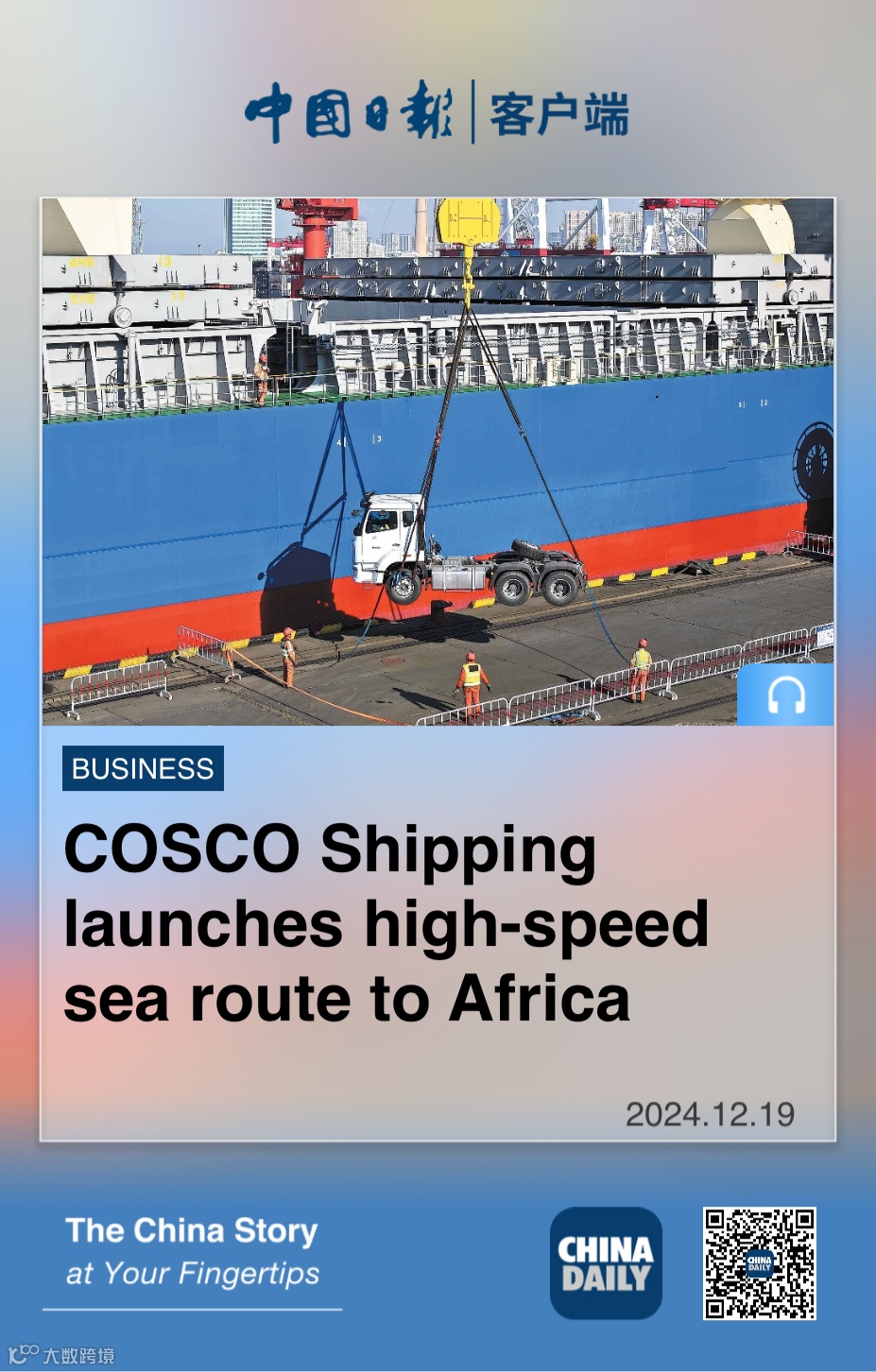► 中国日报称:This route adds a safe and fast maritime shipping alternative between China and Africa, aiming to boost trade connectivity between two sides and helping stabilize the global supply chain.