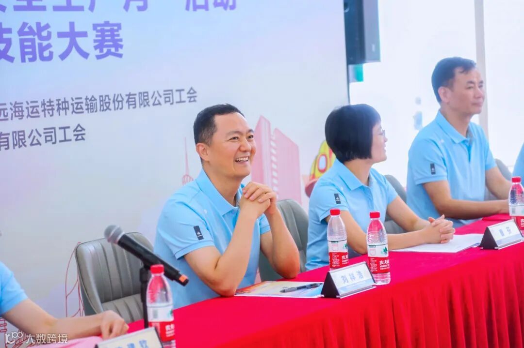 中远海运特运党委副书记刘祥浩、工会主席陈建钦等相关领导到现场为选手加油鼓劲。来自特运本部及各下属单位的近百名选手组成的十支队伍参加角逐。