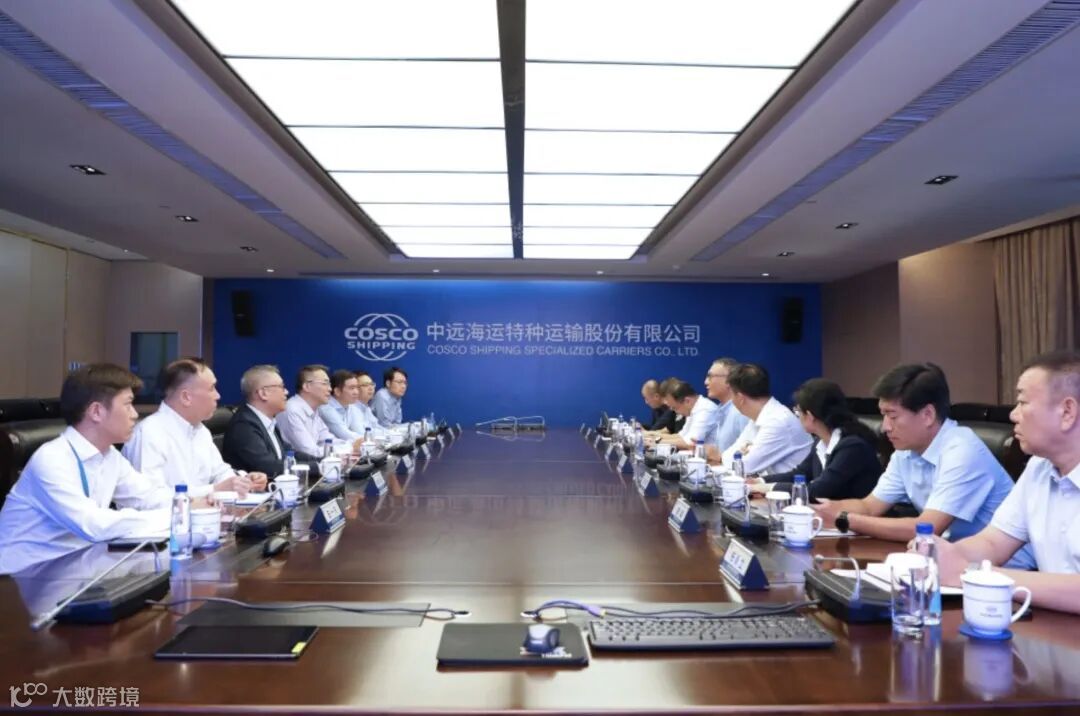 8月20日下午,天津中远海运董事长、党委书记、总经理王然带队拜访特运,公司董事、总经理黄南热情接待了王然董事长一行。