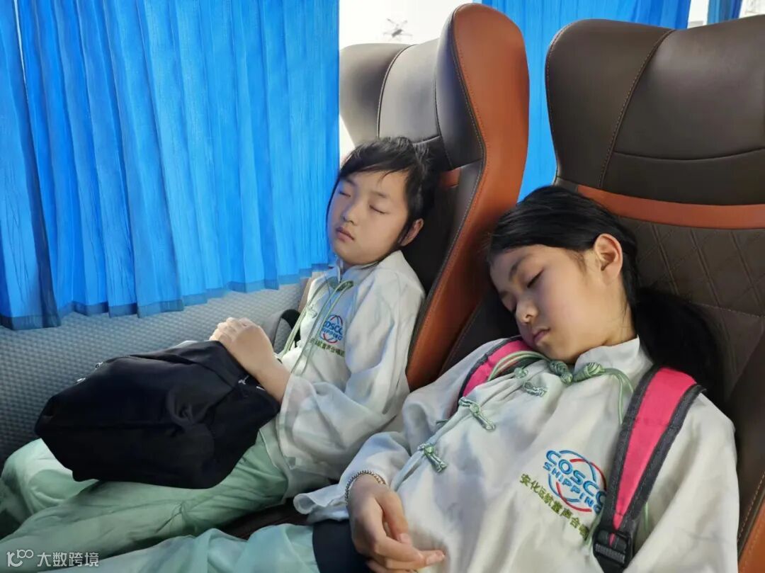 ——回宾馆的大巴上,排练了一个下午的小朋友们睡着了。