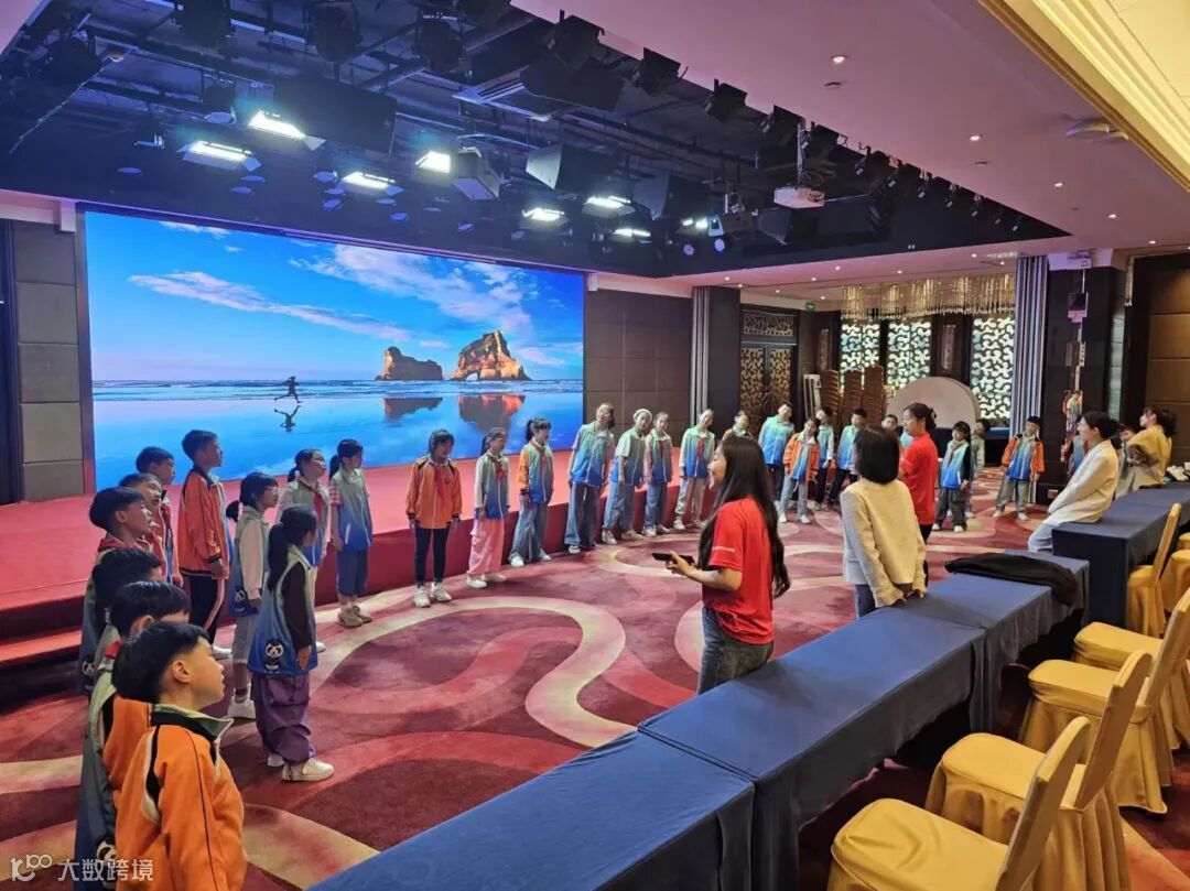 一天前,小朋友们顺利抵达广州,一下高铁,合唱团全体成员便迅速集合前往长隆国际会展中心,投入到紧张的彩排中。