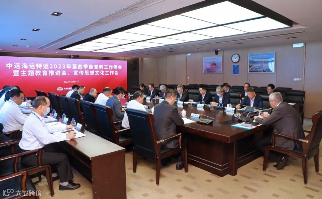 12月12日上午,中远海运特运召开2023年第四季度党群工作例会暨主题教育推进会、宣传思想文化工作会,总结第二批主题教育开展情况及2023年度宣传思想文化工作,研究部署下阶段重点工作任务。公司党群领导,党群部室负责人,直属党委副书记,各二级党组织负责人及党办主任等参加了会议。