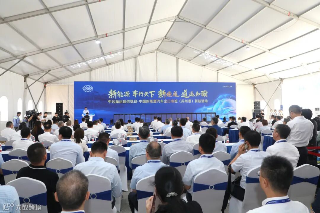 ▲ “新能源、车行天下,新通道、道远知骥——中远海运保供稳链·中国新能源汽车出口专班(苏州港)首航”活动