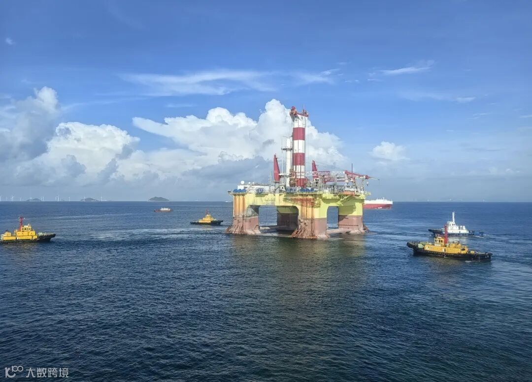 中国海油“深蓝探索”平台是我国自主设计建造的全球首艘获得挪威船级社(DNV)智能认证的钻井平台。该平台长111.5米、宽88.5米、高109米、重35500吨,最大作业水深1000米,最大钻井深度9144米,集成了传统锚泊型钻井平台和现代动力定位型平台的性能优点,是名副其实的“大国重器”。