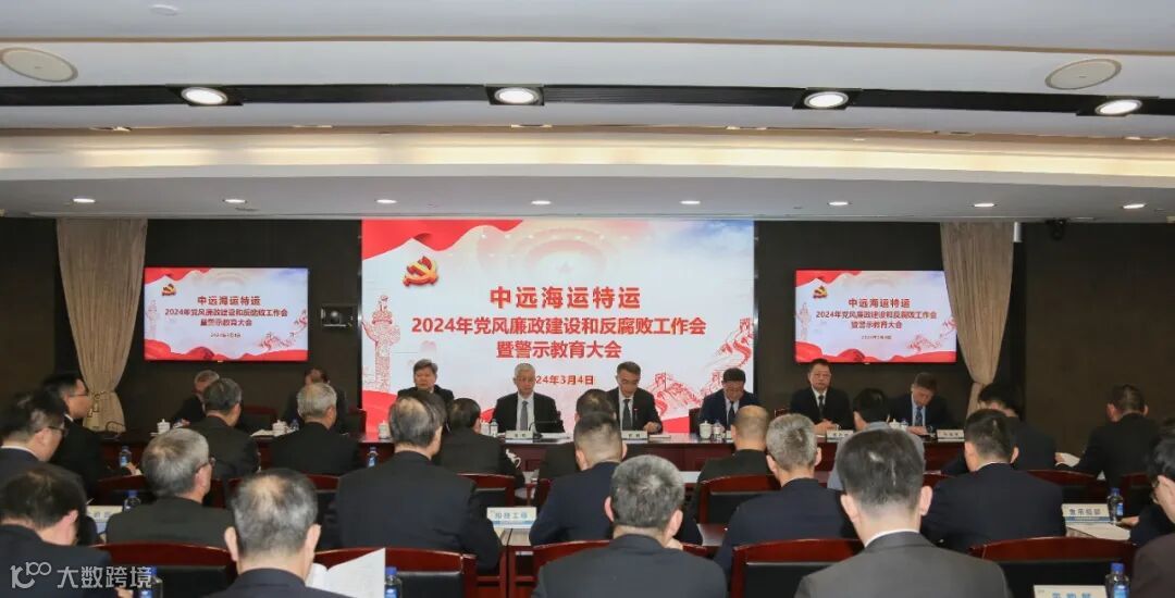 3月4日下午,中远海运特运召开2024年党风廉政建设和反腐败工作会议暨警示教育大会,深入贯彻二十届中央纪委三次全会精神、集团2024年党风廉政建设和反腐败工作会议精神,总结公司2023年党风廉政建设和反腐败工作,部署2024年重点任务。