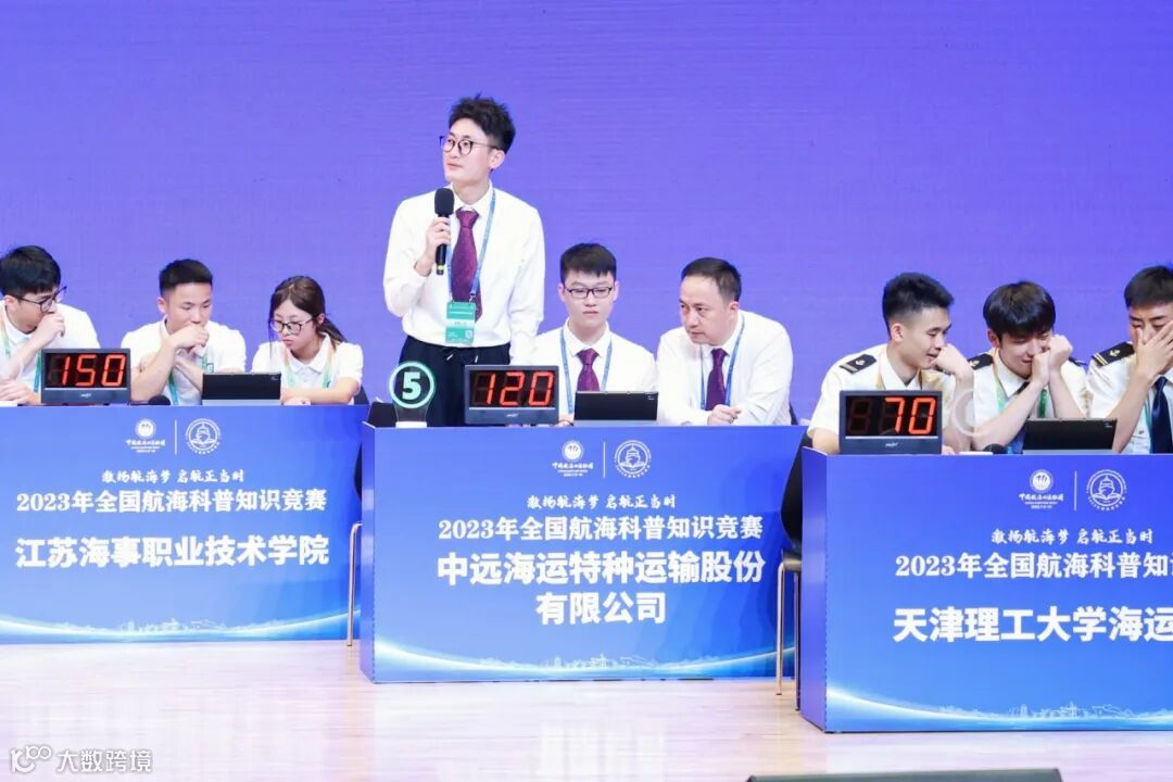 上午的全国航海科普知识竞赛由中国航海学会、中国海员建设工会主办,河北省航海协会承办,采取线下比赛+线上直播的形式,多方位宣传航海文化。比赛以问答方式进行,包括必答题和抢答题两个环节,来自全国各地9家航海院校、5家海事单位和2家航运企业组成的16支代表队现场展开激烈角逐。