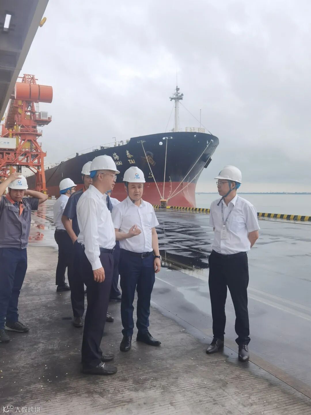会谈前,陈威董事长一行参观了新沙码头港区,深入了解新沙码头的布局规划和业务发展情况。