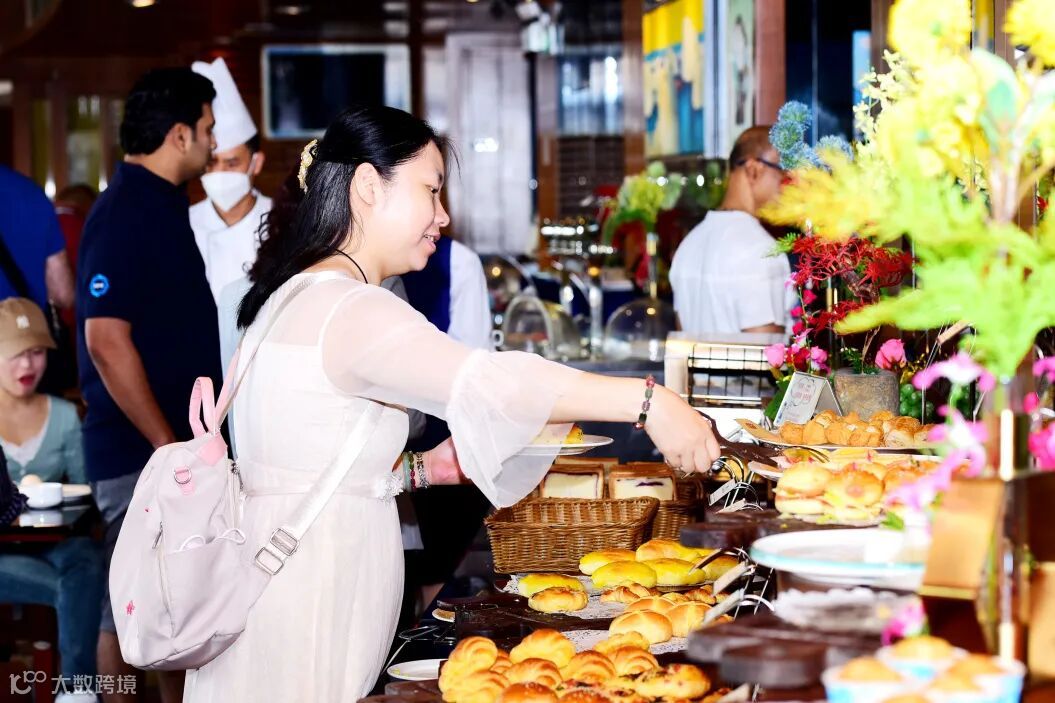 交易会期间,餐饮部加强对员工的英语培训,并在大堂设置咨客台,对国内外宾客进行用餐指引和沟通。同时,为满足宾客不同需求,餐饮部在27楼风帆西餐厅准备了穆斯林食品区、酒水车区方便客人享用。