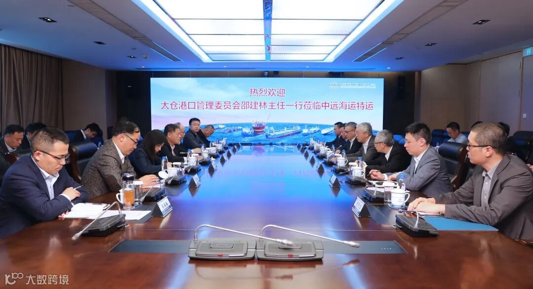 太仓港口委原副主任董济文、副主任周晓荷、纪检监察工委书记孙达成、主任助理兼党政办公室主任李海峰,太仓海关副关长江红星,常熟经济技术开发区管委会副主任唐志军,太仓正和国际集装箱码头有限公司总经理马玉龙,江苏长江石油化工有限公司总经理丁玉海,中国太仓外轮代理有限公司总经理张德俊,常熟新泰港务有限公司总经理孙珏;中远海运特运副总经理顾卫东,总经办、上海公司、纸浆事业部负责人及相关人员参加了会谈。