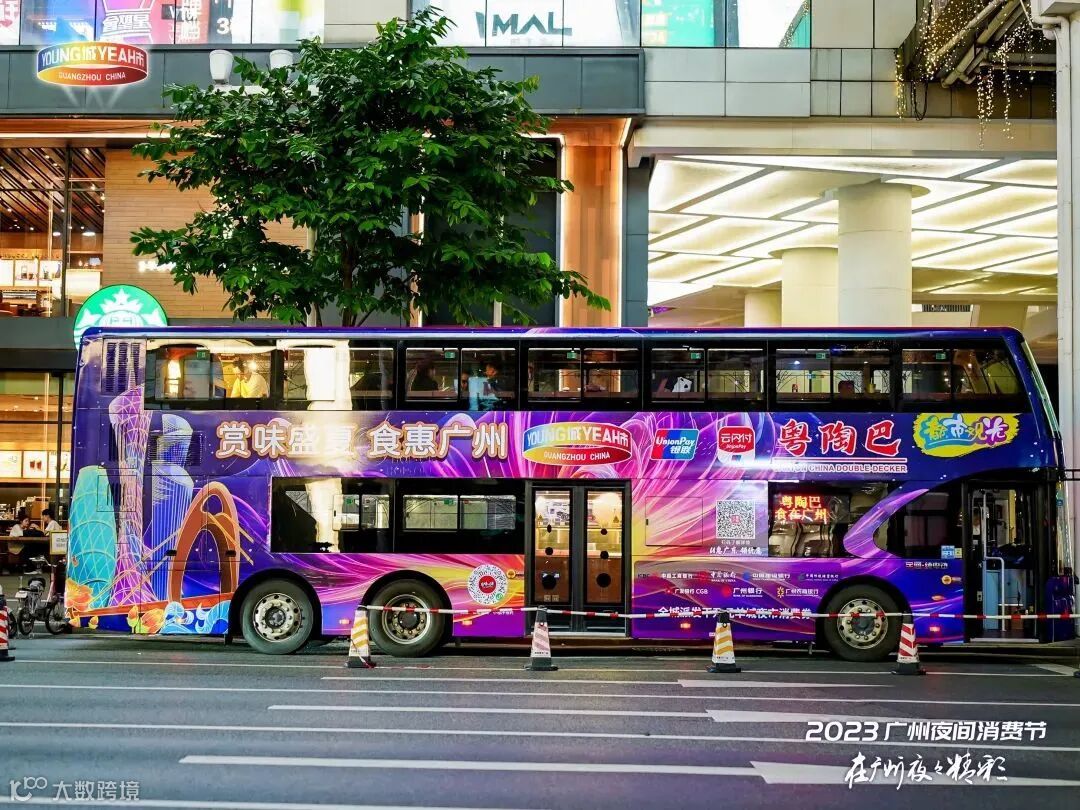 粤陶巴是广州首辆城市观光餐饮双层巴士,从广州最具现代都市风情的二沙岛出发,穿梭于珠江人文黄金海岸,串联起星海音乐厅、广东美术馆、体育公园、传祺公园等多处城市景观和艺术瑰宝。透过巴士360度全景车窗,一边品味经典广府美食,一边观赏广州塔小蛮腰,感受着珠江两岸微风轻拂,跟随巴士从绚烂夕阳缓缓驶入夜色璀璨。