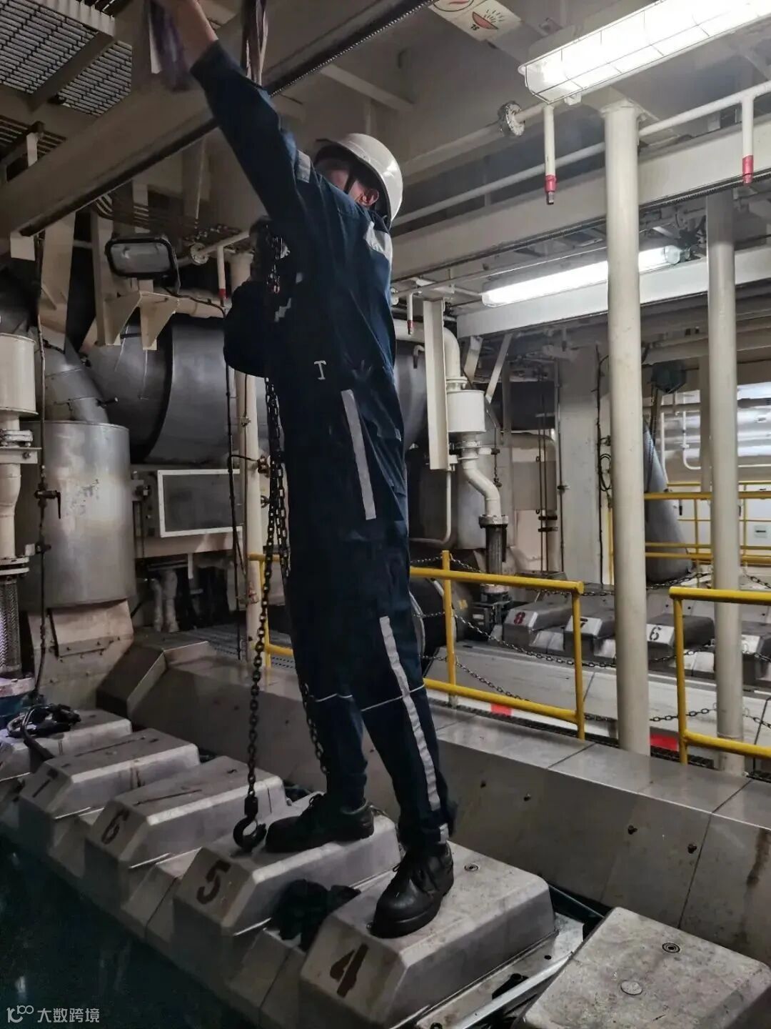 我叫许家铭,现任“祥和口”见习电机员。初上半潜船,感觉一切都很新鲜,一切都充满了未知。船上的生活可以说与风险相随相伴,一不小心就可能遭遇磕碰伤,所以我总是时刻把“安全”二字牢记心中。在船上的这段时间,我跟着师傅们学到了许多在学校里学不到的知识,例如半潜船与其他船不同,机舱分为左右两部分,电力系统分为中压和低压等等,总之设备更多更复杂,自动化程度高,在未来的日子里,我仍有许多东西要学习。路漫漫其修远兮,我相信未来自己能成为一名合格的电机员。
