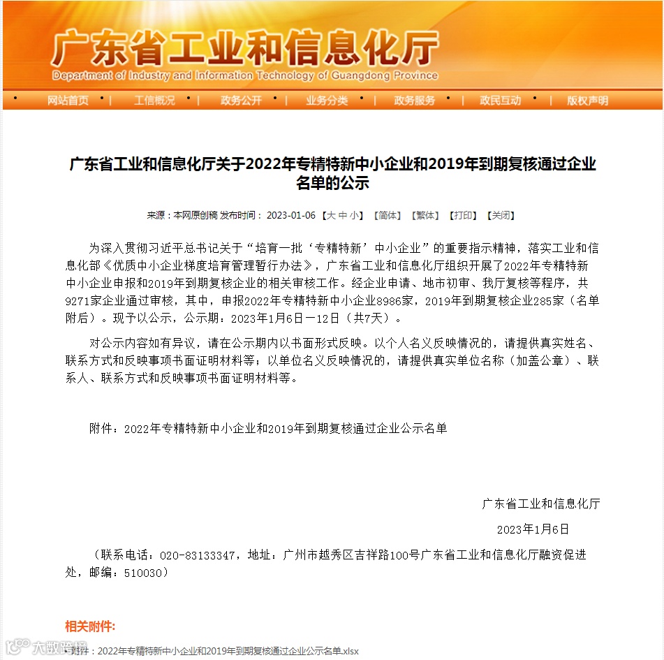广东省工业和信息化厅公布2022年专精特新中小企业公示名单。经企业申请、地市初审、广东省工业和信息化厅复核等严格程序,以及为期一周的公示,1月12日,特运下属广州中远海运船舶技术工程有限公司(以下简称“船技工程”)成功通过广东省专精特新中小企业评审认定,继2022年底荣获“广东省创新型中小企业”称号后,新年伊始再次进阶入选“广东省专精特新中小企业”!