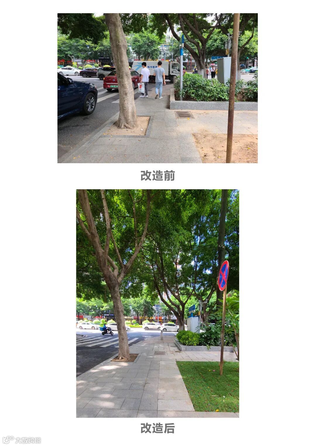 经过改造后绿化带环境及人行道通行情况均明显改善,得到周边居民的一致赞扬。