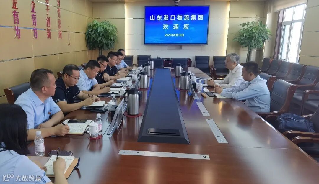 陈威董事长带队拜访山东港口陆海物流集团,陆海物流集团党委副书记、董事、总经理冷冰热情接待了陈威董事长一行。双方各自介绍了近期生产经营及未来发展规划等方面情况,并就未来进一步加强信息互通、深化开放合作进行了广泛交流。陆海物流集团常务副总经理师清杰、副总经理陈勇及双方相关业务负责人参加了会谈。