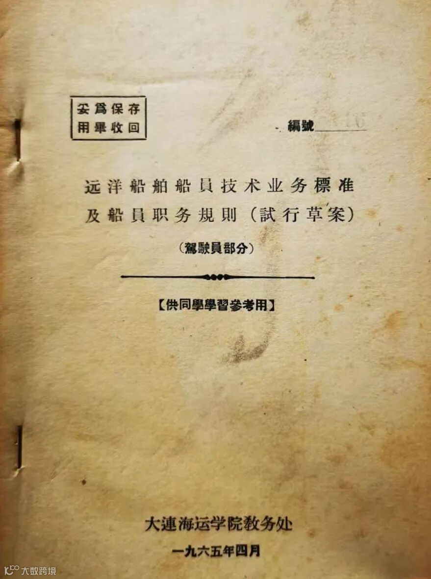 时间拉回到55年前。那是1965年9月初,我正在大连海运学院读五年级,那时我的名字还是“王养智”,毕业时改名“王东辉”。学校通知我和同班同学李金考立刻到广远上船进行毕业实习,当时我俩高兴极了。临行前学校交待我们要爱祖国、守纪律,听从船上的指挥,甘当小学生,虚心向老船员学习,认真完成实习任务,同时发给我们一本远洋船舶驾驶员职责的小册子,“望认真对照执行”。