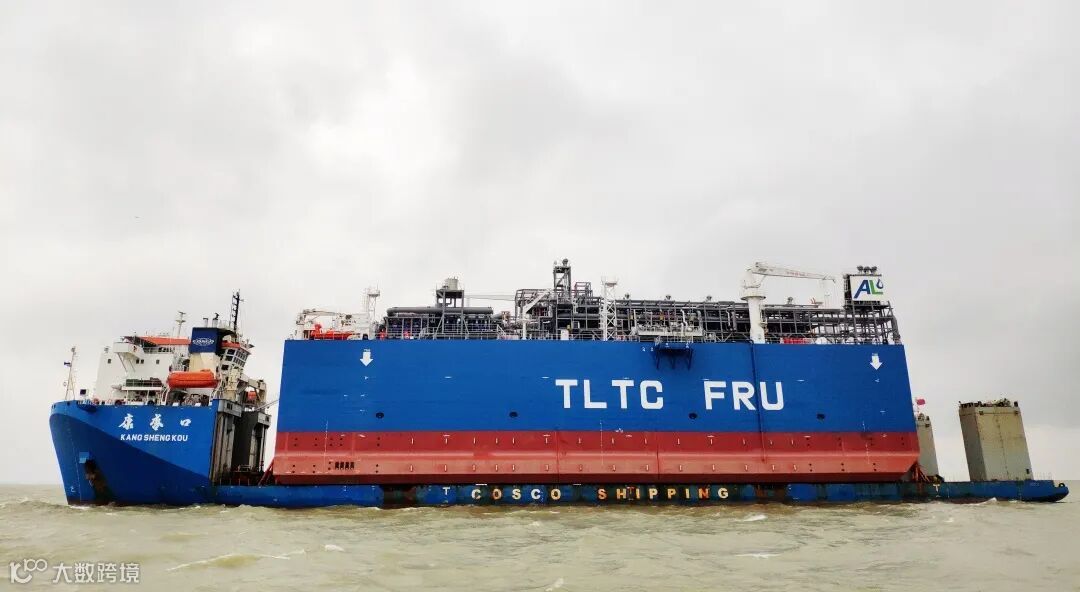 “康盛口”轮此次潜装的大型LNG海上浮式再气化单元“TORMAN”,是长96.4米、最大宽度47米、高33米的长方体厢式单元,重达10709吨,由江南造船(集团)有限责任公司建造。平台装载后将运往非洲进行终端再气化试验,用于在加纳进行的总价3.5亿美元液化天然气进口项目,服务当地基础建设。