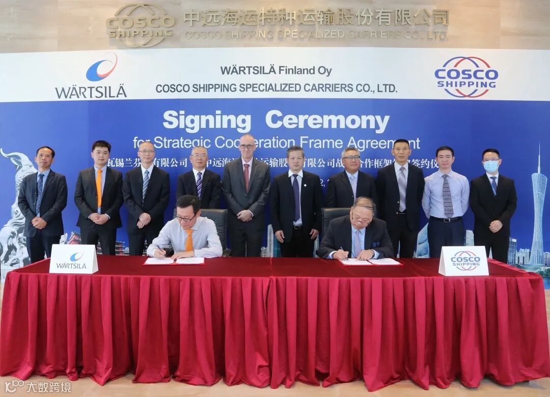 中远海运特运与瓦锡兰集团在广州远洋大厦举行战略合作框架协议签约仪式。