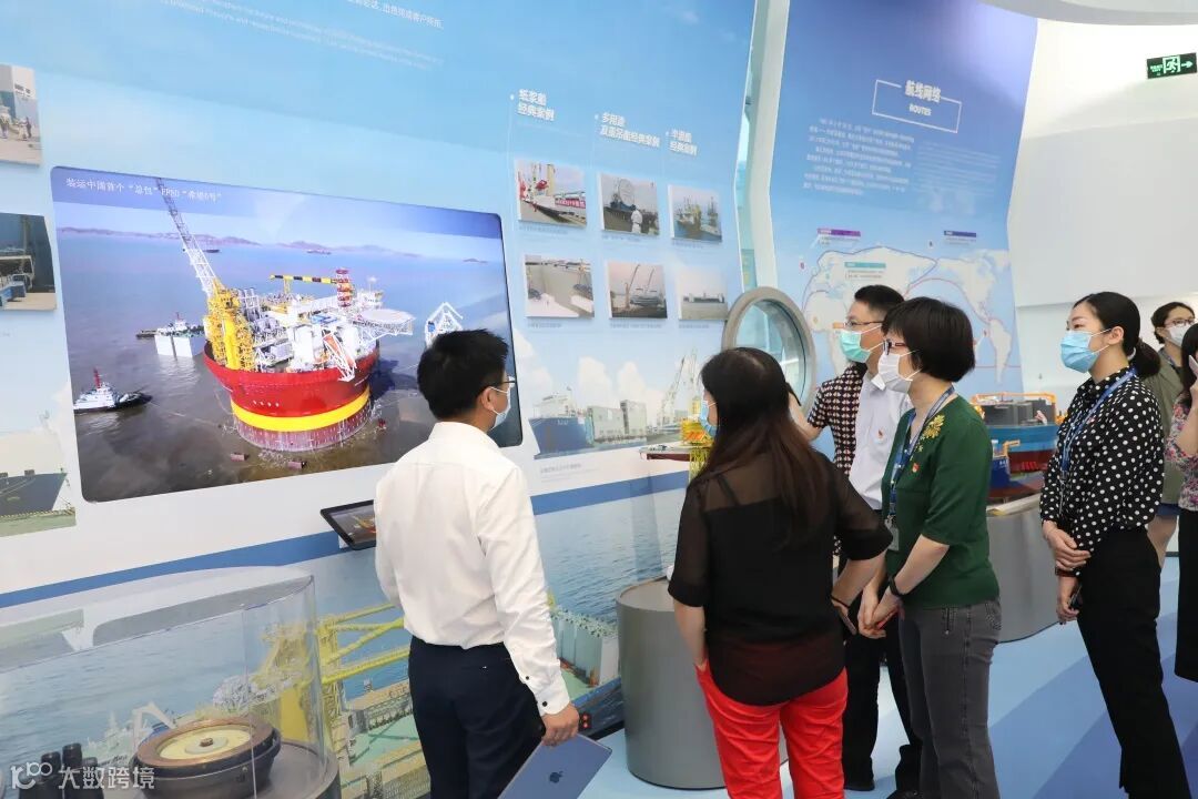 整个展厅设计借鉴了潮水的形态,以蓝白为主色调,简洁明亮,视觉感极强。参观者徜徉在展厅,仿佛置身于大海中航行的船舶之上,身临其境地跟随讲解员走过公司59年的发展历程,不由对新中国远洋海运事业的发展壮大产生由衷的赞叹和敬意。我自然最关注展厅里关于半潜船的介绍。半潜船作为公司的主力船型,多次参与国际大型能源开发项目和超重超大货物运输,无论是管理要求极高的模块运输项目,还是技术要求极高的海上浮托安装项目,在新展厅里都以各种形式突出呈现,自豪地向每一位参观者展示着过往的业绩和荣耀。看着展示,听着讲解,在场的每一位半潜船部员工无不心潮澎湃,斗志昂扬。过去的故事有人演绎,未来的道路更需要人去开拓。半潜船经营部将继续利用逐步积累的“管理+技术”优势,以“举重若轻的实力,举轻若重的精神”与公司其它船队一起携手共进,努力实现公司的企业愿景,谱写新时代的华彩赞歌——祥瑞济盛世,光华耀四海!