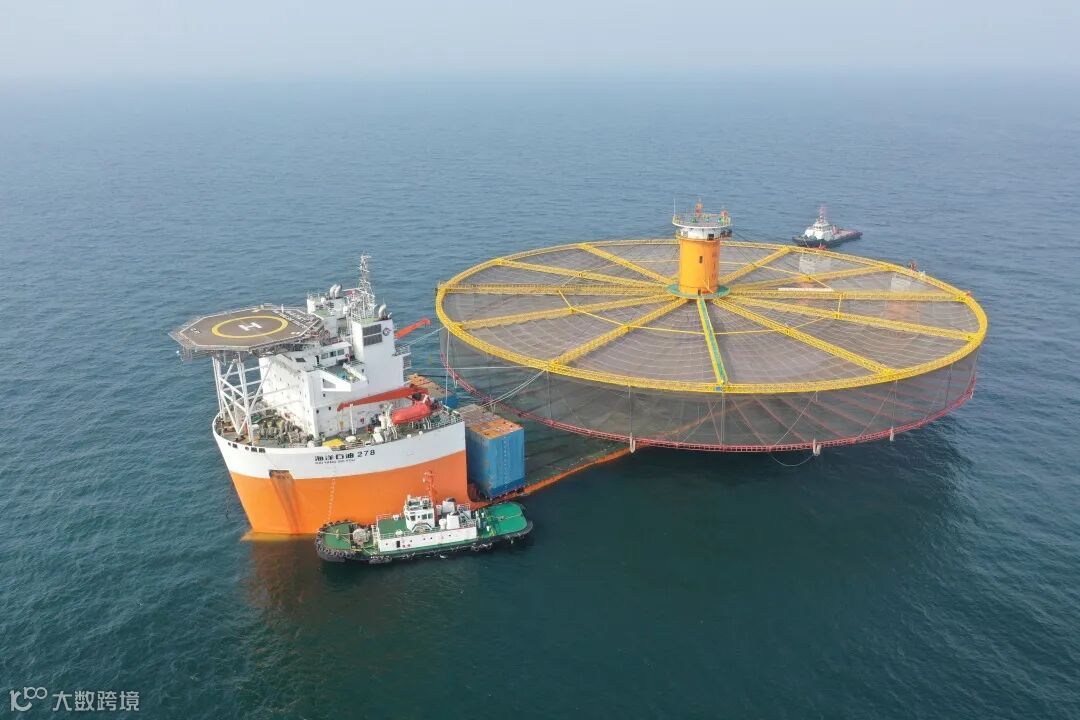 “海峡1号”总体高度42米,网箱直径141米,网箱高度12米,由福鼎城投委托马尾造船厂建造,福建新继船舶服务公司负责运输安装,中远海运特运使用50000吨级半潜船,负责渔场运输方案的制作,及货物装船、浮卸作业。