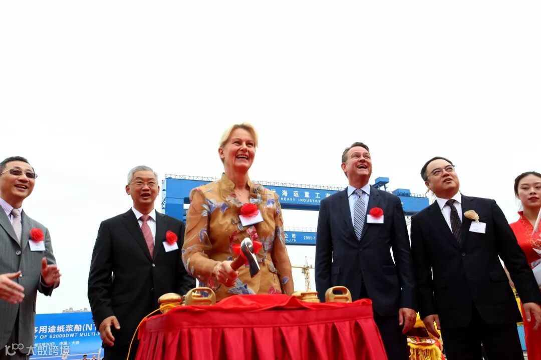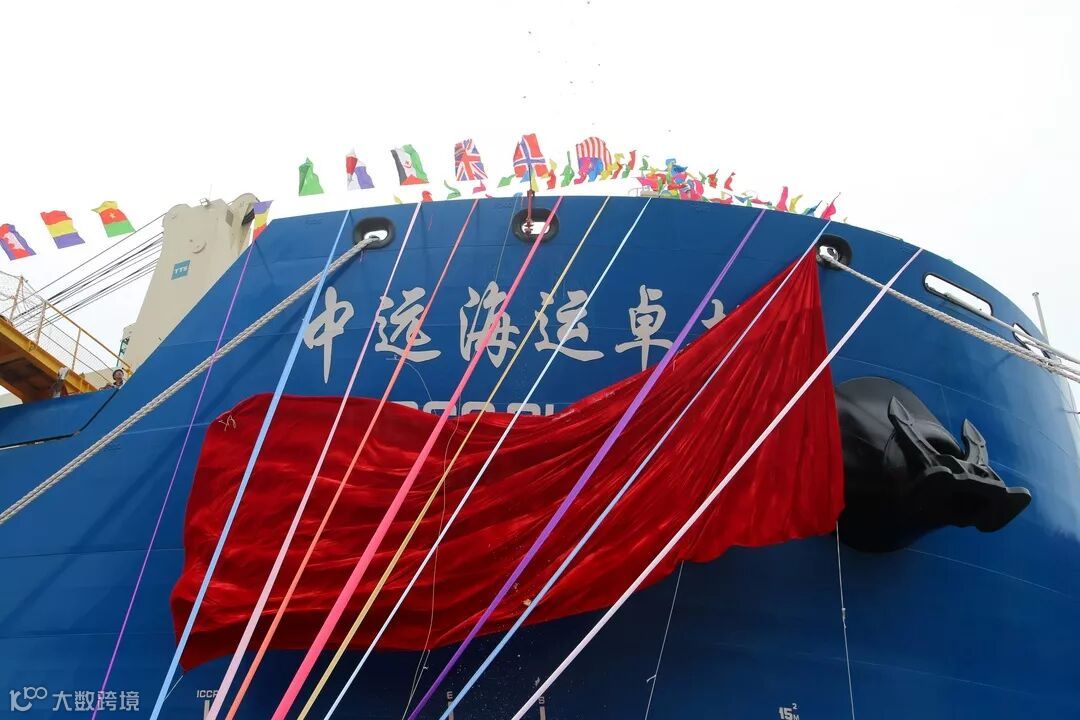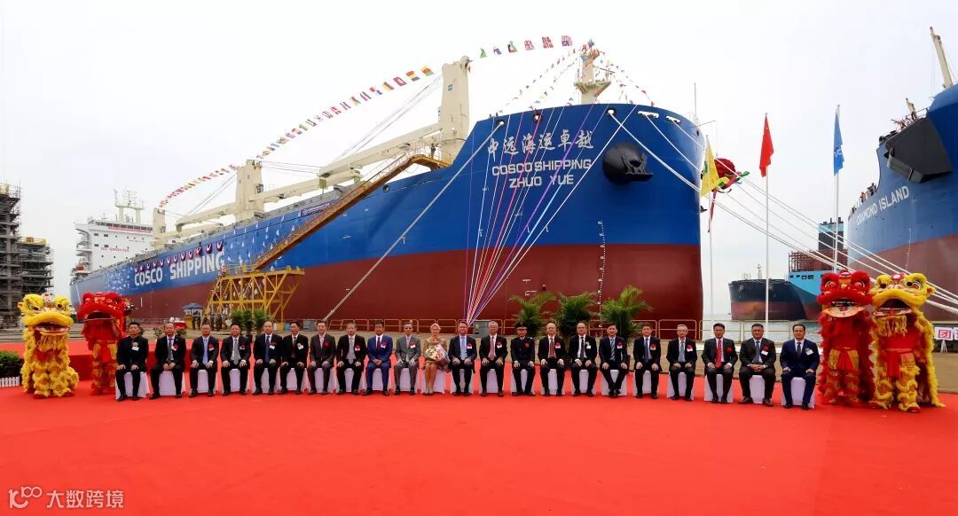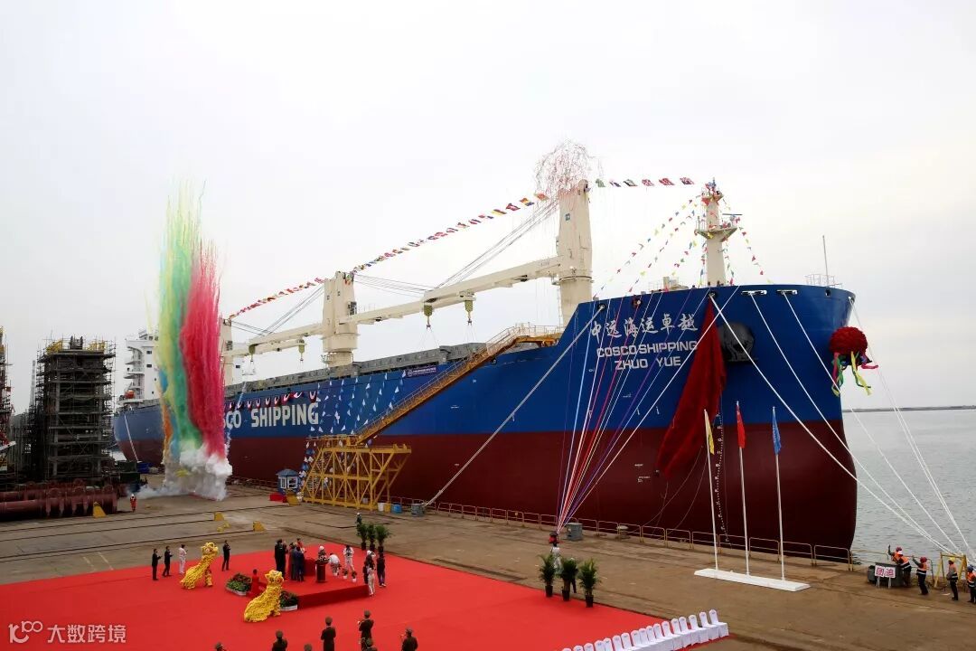 大连中远海运重工船厂码头,中远海运特运与中远海运重工“5+4艘”62000吨多用途纸浆船项目合同首制船“中远海运卓越”轮命名仪式隆重举行。