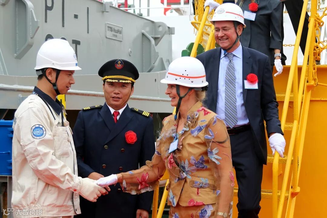 中远海运集团运营部副总经理秦岭,中远海运重工总经理梁岩峰,中远海运特运总经理陈威、副总经理吴亮明、董事会秘书董宇航,以及来自中远海运船贸、中国船级社、上海船舶设计院、中国船柴等单位的领导和嘉宾出席了命名仪式。教母Ms. Karin Hansen女士为“中远海运卓越”轮砍缆命名。