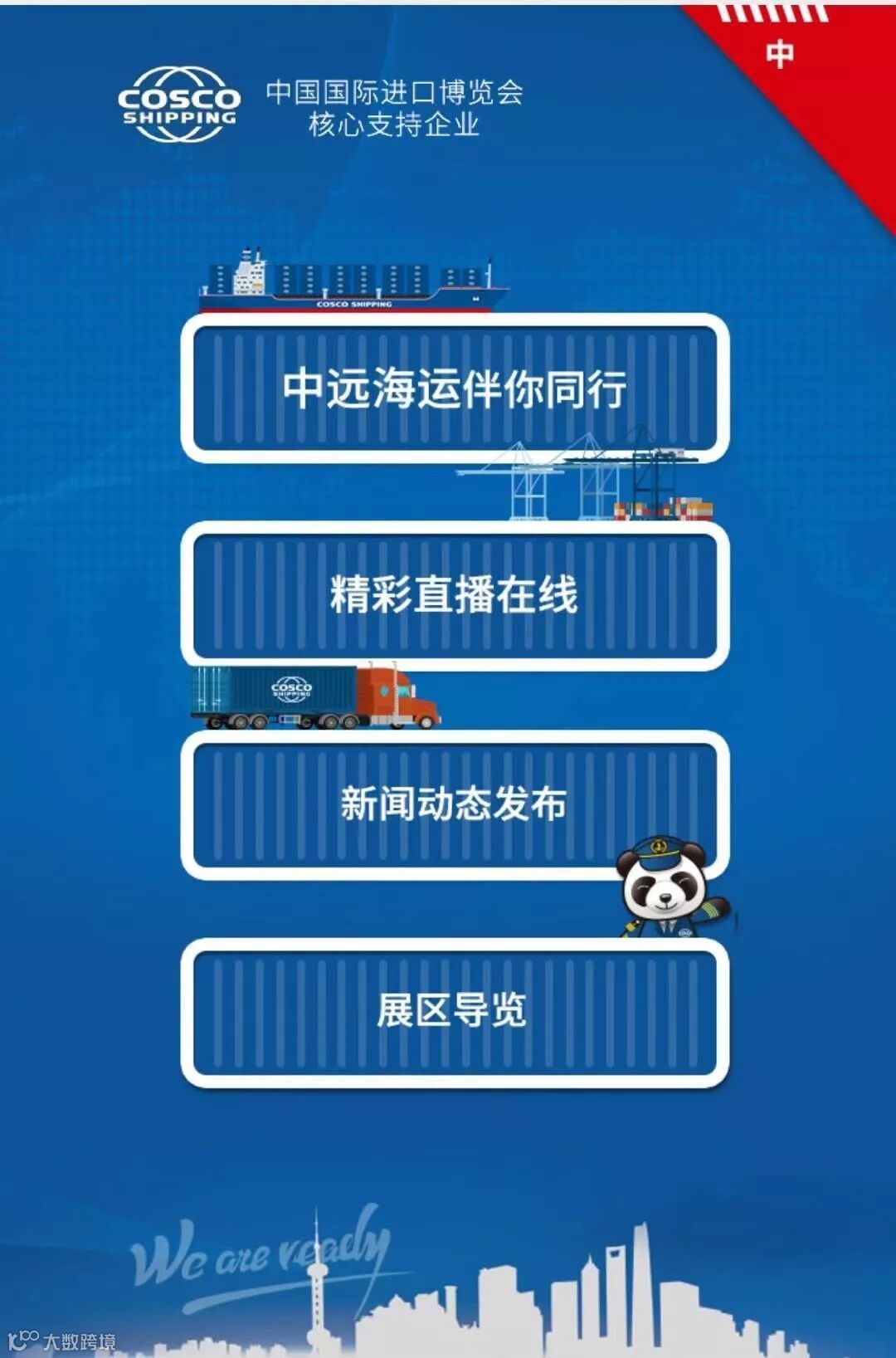 在这里可以看到中远海运作为中国国际进口博览会核心支持企业为第二届进博会提供的运输服务、综合服务区、科技保障、会务服务。