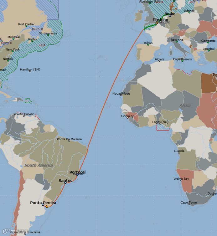 2019年1月份,特运公司正式开通大西洋准班轮航线服务。天佑轮从乌拉圭开出,分别于2月4日和7日先后抵达荷兰Flushing港、德国Brake港卸货。▼