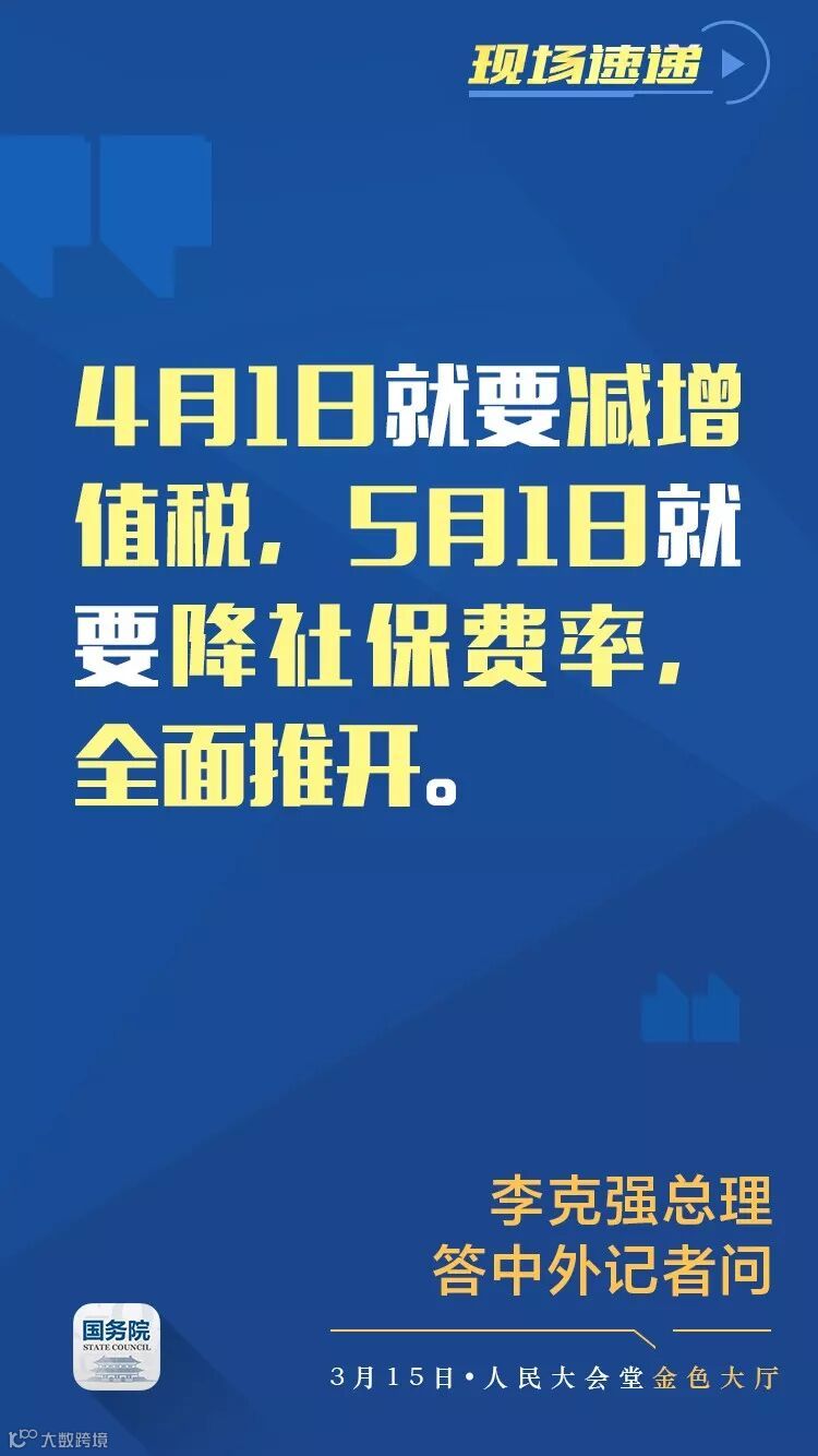 李克强:4月1日就要减增值税,5月1日就要降社保费率。政府就要过紧日子,让利于企业,让利于民,这样财政才更可持续。