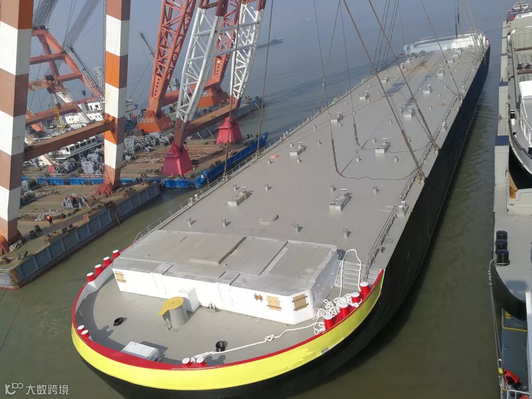 中远海运特运大吉轮从南通港启航取道21世纪海上丝绸之路前往欧洲港口。该轮的甲板上装有多艘由中国制造的大型驳船,其中一艘长135米、重2200吨,刷新了特运重吊船运输单件货物最长、最重两项纪录。